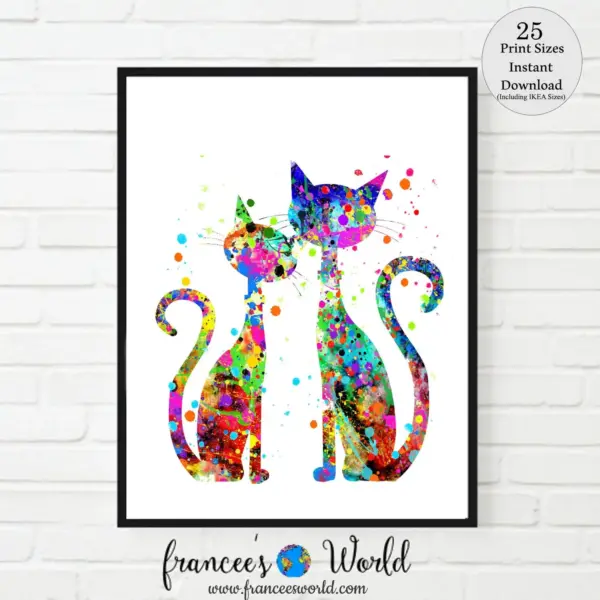 Cat Print Two Cats Print Cat Printable Cat Lover Art Cat Poster Cat Poster Wall Art Cat Watercolor Cats Animal Art Cat Lover Gift