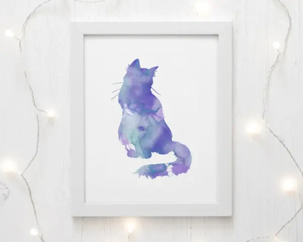 Cat Print Watercolor Art Printable Cat Poster Cat Painting Cat Wall Art Nursery Decor Lilac Purple