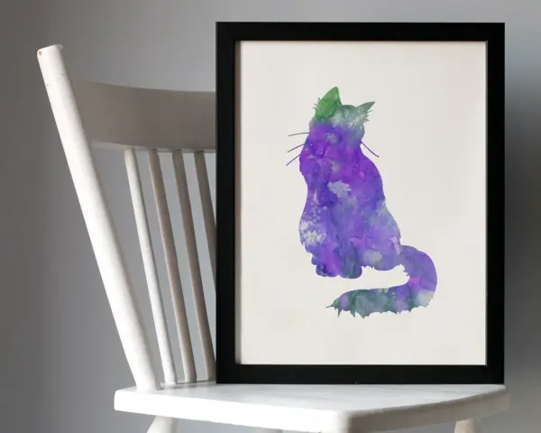 Cat Print Watercolor Art Printable Cat Poster Cat Painting Cat Wall Art Nursery Decor Purple