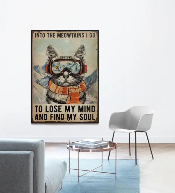 Meowtains Ski Poster: Cat Lover Winter Sports Art Print