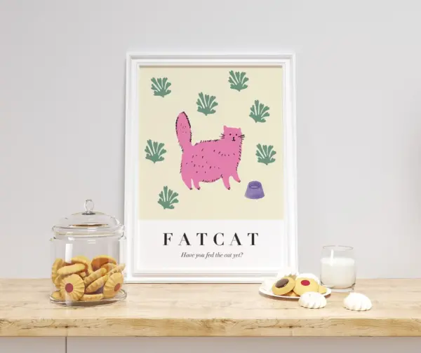 Cat Printable Art Funny Cat Art Housewarming Gift Cat Lover Kitchen Wall Art Cat Poster Cat Painting Abstract Cat Lovely Fat Cat