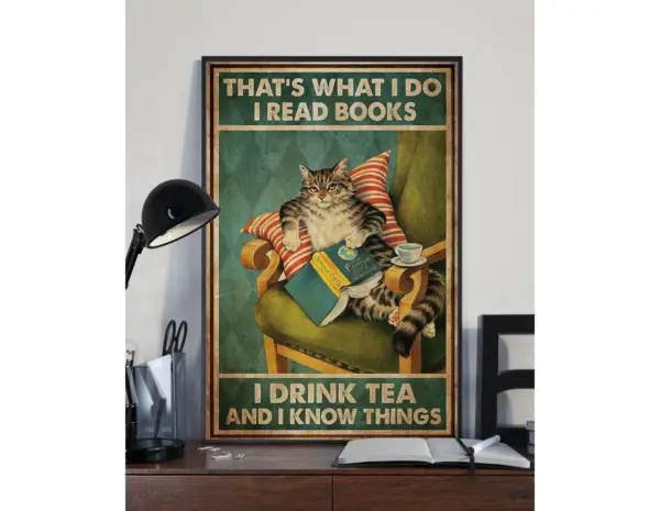 Cat Reads Book Cat And Book Poster Cat Drinks Tea Poster Cat Art Print Book Poster Wall Decor Home Decor Art Print