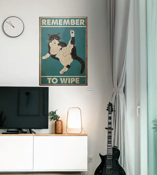 Cat Remember To Wipe Poster Framed Matte Canvas