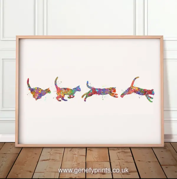 Cat Run Cycle Watercolor Print Cat Prints Cat Watercolor Art Painting Cat Poster Gift For Cat Lover