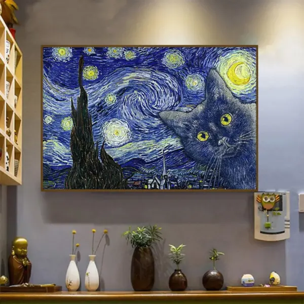 Cat Starry Night Poster Cat Lover Poster Cat Poster Animal Lover Poster Starry Night Wall Art Decor Funny Poster