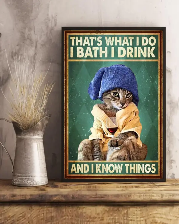 Cat That S What I Do I Bath I Drink Poster Art Cat Lover Funny Cat Poster Best Gifts Ever Wall Decor Poster No Frame