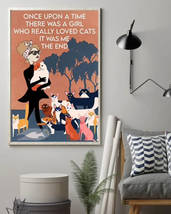 Cat There Was A Girl Poster Wall Poster Retro Style Funny Kitty Poster