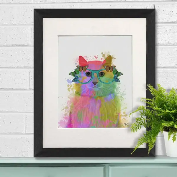 Cat Wall Art Butterflies Neon Cat Gift Cat Print Canvas Cat Mom Best Cat Lover Gifts Cat Poster Cat 3 Portrait Print With Flower Glasses