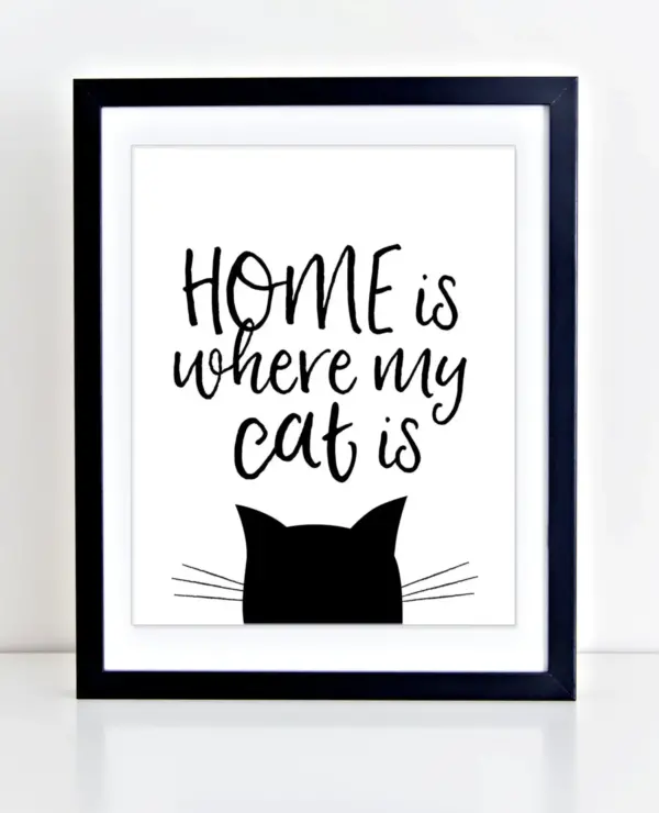 Cat Wall Art Cat Lover Gift Home Is Where My Cat Is Cat Decor Cat Printable Cat Lover Gift Black Cat Wall Art