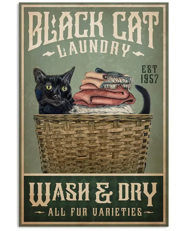 Cat Wash And Dry Poster Wall Poster Retro Style Funny Kitty Poster