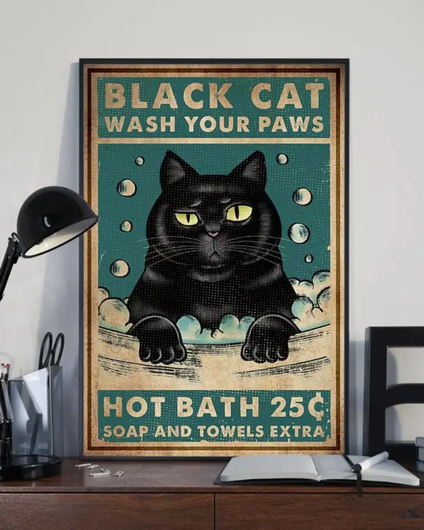 Cat Wash Your Paws Poster Wall Poster Retro Style Funny Kitty Poster