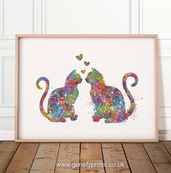 Cat Watercolor Art Print Cat Couple Portrait Wedding Anniversary Gift Cat Lover Gift Couple Prints Couple Gift Ideas