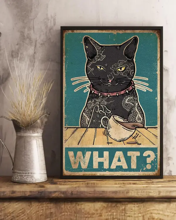 Cat What Poster Wall Poster Retro Style Funny Kitty Poster