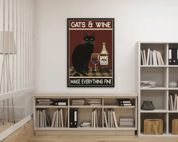 Cat Wine Make Everything Fine Black Cat Wine Poster Black Cat Dining Room Poster Black Cat Lover Gift Sassy Black Cat Poster