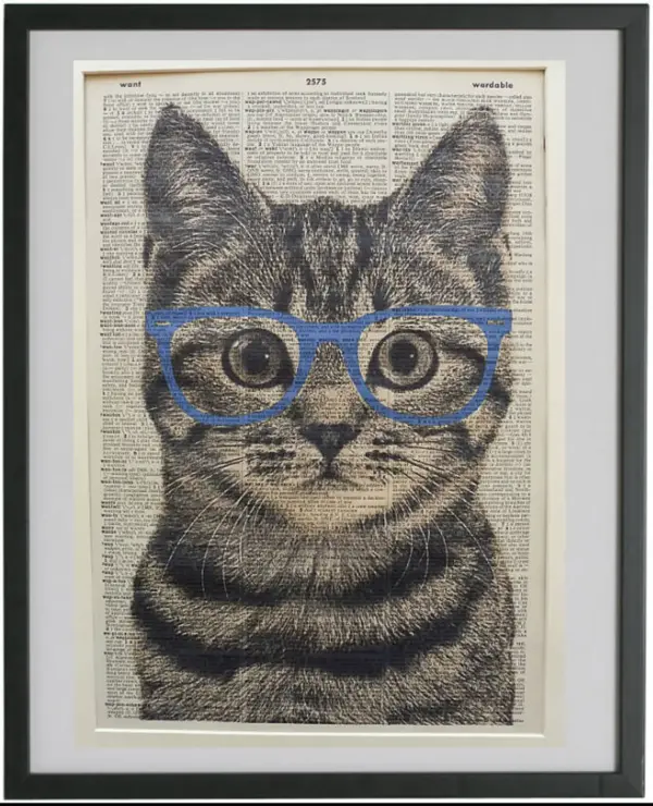 Cat With Glasses Print No 195 Cat Poster Housewarming Gifts Cat Wall Decor Funny Cat Dictionary Print Tabby Cat Gifts Cat Lover Gifts