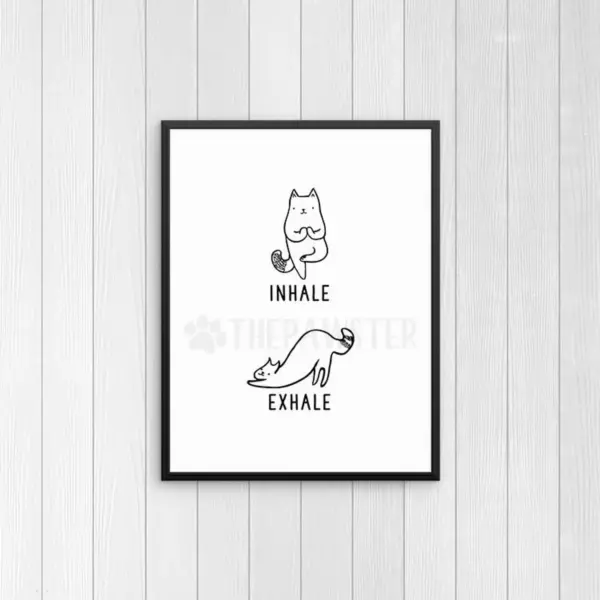 Cat Yoga Art Print Inhale Exhale Wall Decor Cat Yoga Wall Art Yoga Sign Yoga Lover Gifts Quote Wall Art Poster