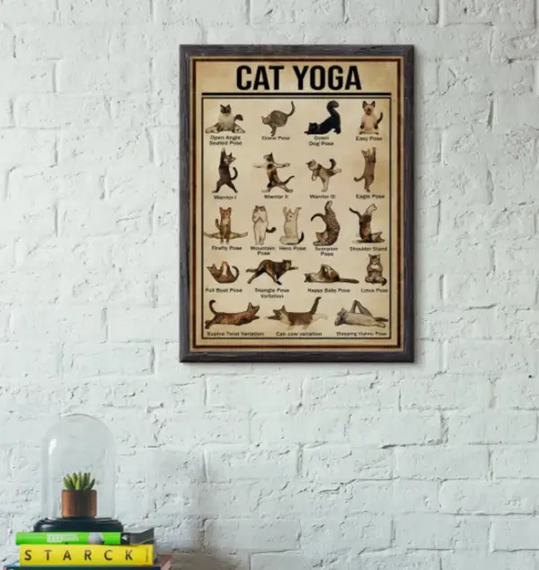 Cat Yoga Poster No Frame Funny Cat Poster Yoga Poster Practice Yoga From Home Cat Lover Gift Vintage Yoga Wall Art Print 1