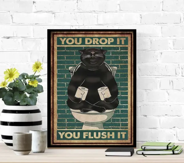 Cat You Drop It You Flush It Poster