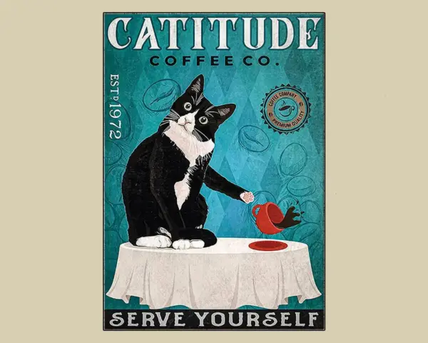 Catitude Catitude Coffee Cat Smoke Fan Lover Poster Art Print Wall House Office Decor For Home Living Room Bedroom No Frame