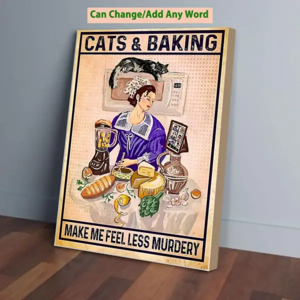 Cats And Baking Make Me Feel Less Murdery Vertical Canvas Wall Art Hang Print Poster Family New Home House Decor Gift Housewarming Gift