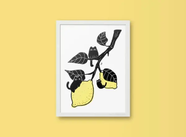 Cats And Lemons Art Print Black Cat Wall Art Lemon Cat Illustration Cat Lover Gift Home Decor Theweirdcatco
