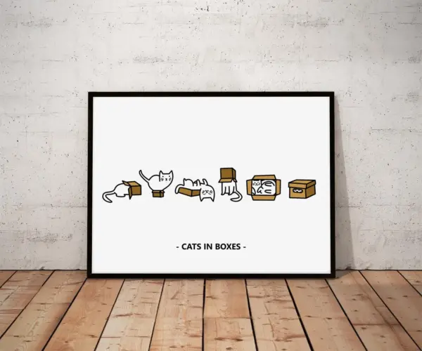 Funny Cat Wall Art - Cats in Boxes Print