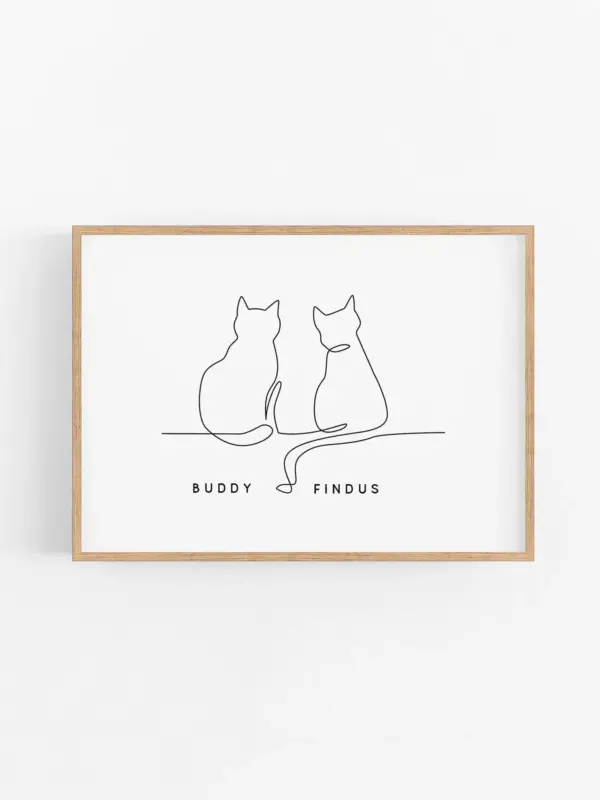 Cats Picture Poster For Cat Lover Gift Line Art Custom Cat Owner