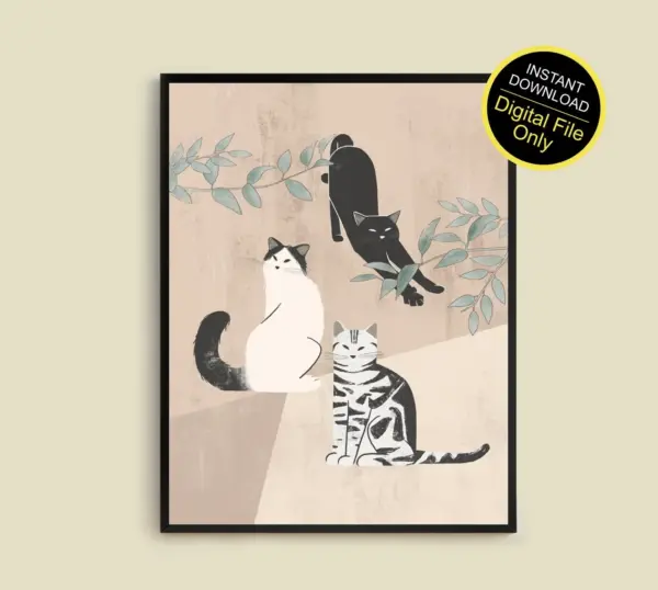 Cats Wall Art Print Cat And Plant Illustration Cat Print Printable Boho Cat Art Cat Poster For Cat Mom Printable Cat Wall Decor