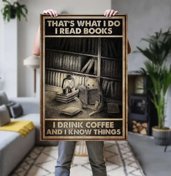 Cats Wall Art Unframed Poster Wall Decor Art Cat Read Books Drink Coffeespecial Gift Personalized Leather Keychain