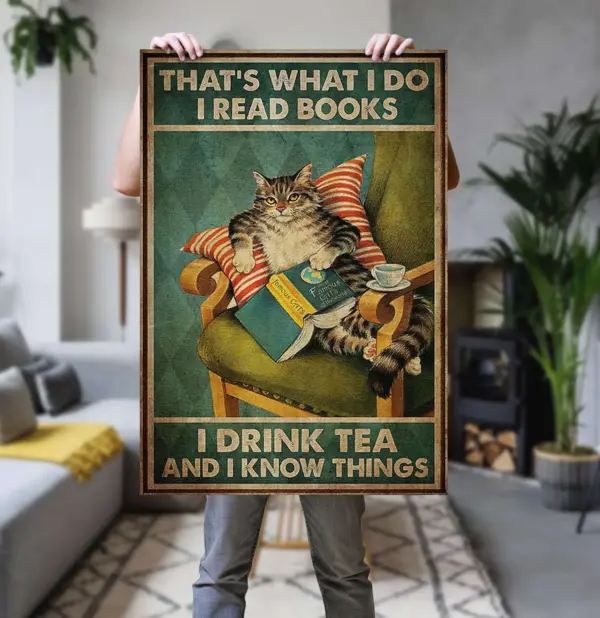 Cats Wall Art Unframed Poster Wall Decor Art Drink Tea Catspecial Gift Personalized Leather Keychain