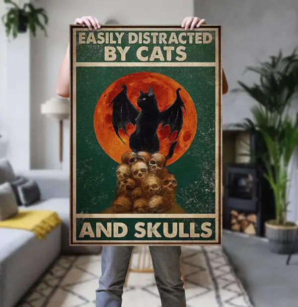 Cats Wall Art Unframed Poster Wall Decor Art Easily Distracted By Cats And Skullspecial Gift Personalized Leather Keychain