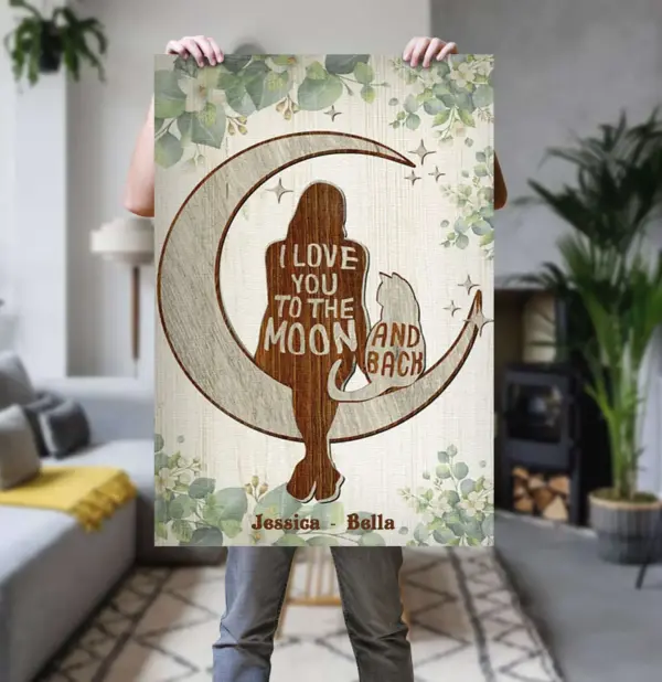 Cats Wall Art Unframed Poster Wall Decor Art Girl And Cat Moonspecial Gift Personalized Leather Keychain