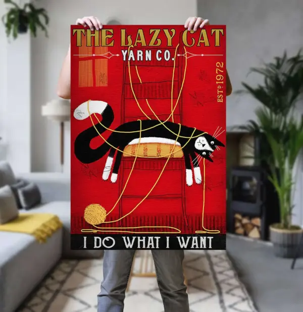 Cats Wall Art Unframed Poster Wall Decor Art Lazy Cat Yarnspecial Gift Personalized Leather Keychain