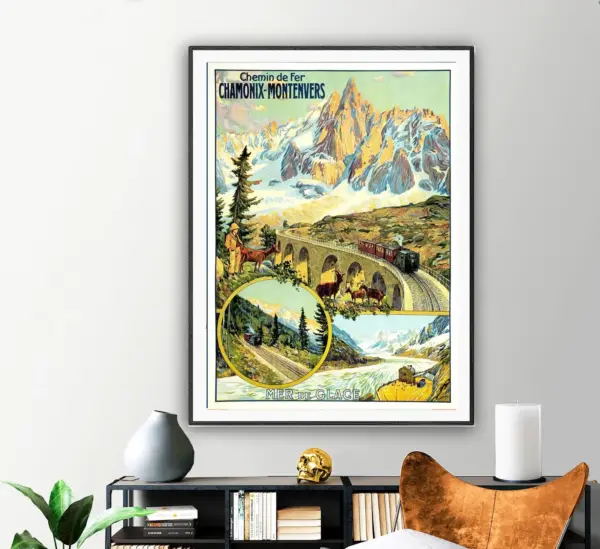 Chamonix Montenvers Mer De Glace Vintage Travel Poster Poster Print Sticker Or Canvas Print Gift Idea