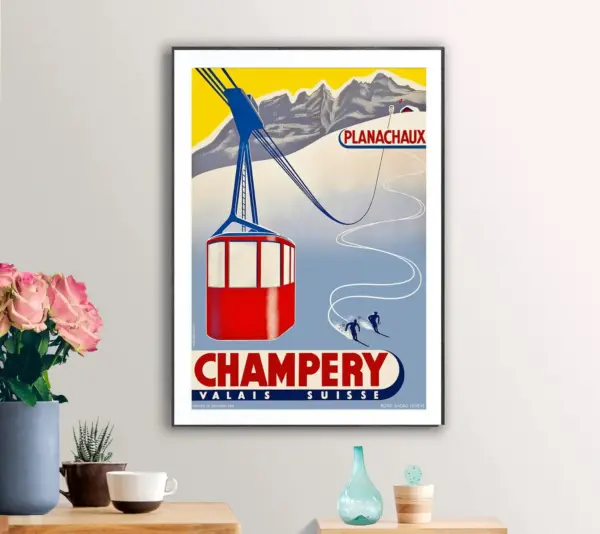 Champery Suisse Vintage Travel Poster Poster Print Sticker Or Canvas Print Gift Idea
