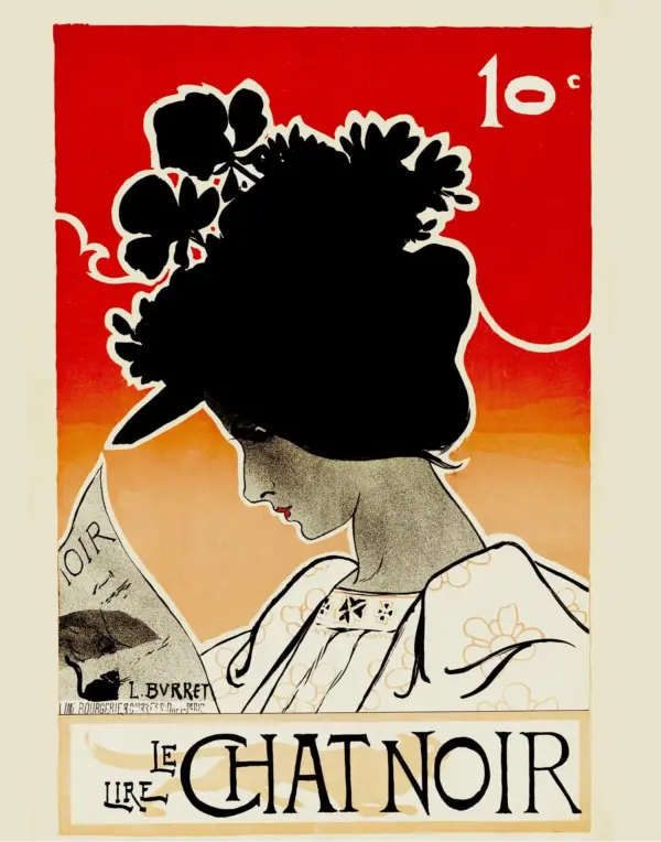Vintage French Chat Noir Cat Art Print - Belle Epoque Black Cat Magazine Cover Poster