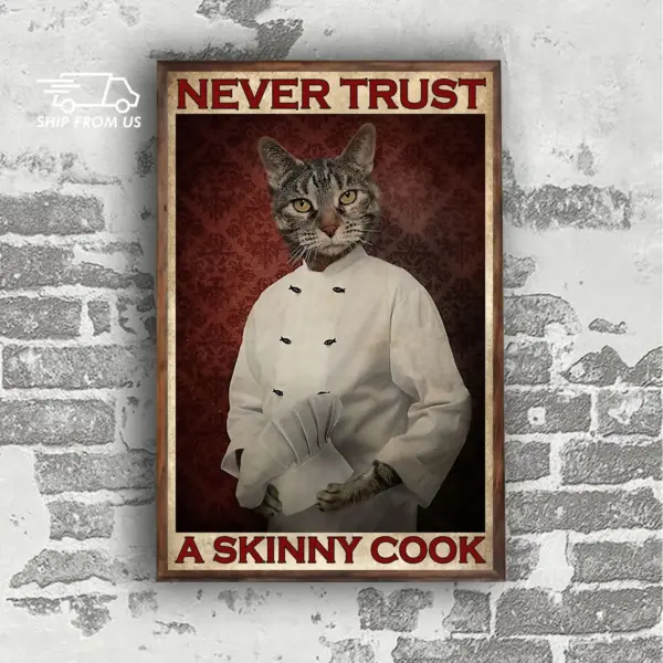 Chef Cat Poster Cook Cooking Lovers Poster Never Trust A Skinny Cook Poster Home Living Decor Poster
