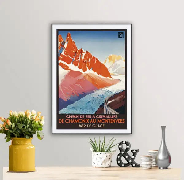 Chemin De Fer A Cremaillere De Chamonix Au Montenvers Vintage Travel Poster Poster Print Sticker Or Canvas Print Gift Idea