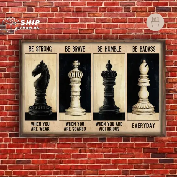 Inspirational Chess Motivational Wall Art - Be Strong Be Brave Poster for Home Decor