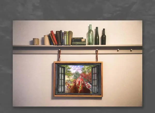 Chicken Poster Farmhouse Print Window View 3D Wall Art Living Room Decor Farm Art Bedroom Wall Art Farm Decor Vinyl Poster Nature