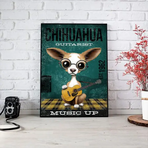Chihuahua Guitarist Poster Chihuahua Dog Lover Chihuahua Art Print Playing Guitar Poster Dog Lover Gift Vintage Poster Dog Portrait