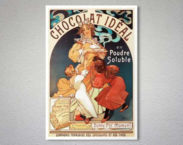 Chocolat Ideal Vintage Food Drink Poster By Alphonse Mucha 1897 Poster Paper Sticker Or Canvas Print Gift Idea Christmas Gift