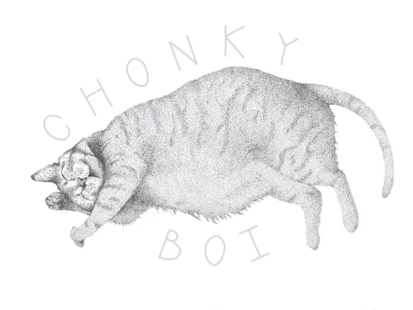 Chonky Boi Illustration Wall Art Fine Art Print Nature Poster Chubby Cat Home Decor Pen Ink Black And White Print House Gift
