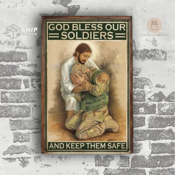 Christian Gifts Veteran S Day Gifts Jesus And Soldier Army Military Poster God Bless Our Soldiers And Keep Them Safe Home Decor Poster