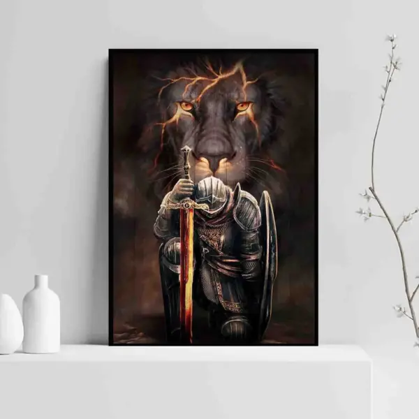 Christian Lion And The Armor Of Faith Poster Lion And Knight Poster Jesus Christ Art Home Decor No Frame Father S Day Gift Poster