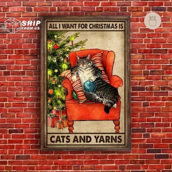 Christmas Gifts Cat Knitting Wool Crochet Yarn Poster All I Want For Christmas Is Cats And Yarns Poster Home Living Decor Poster