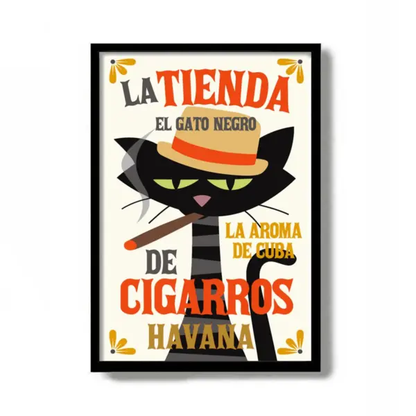Cigar Gifts Black Cat Art Cigar Poster Key West Florida Cigar Bar Cat Lover Gift For Man Cigar Smoker Poker Room Man Cave Wall Art