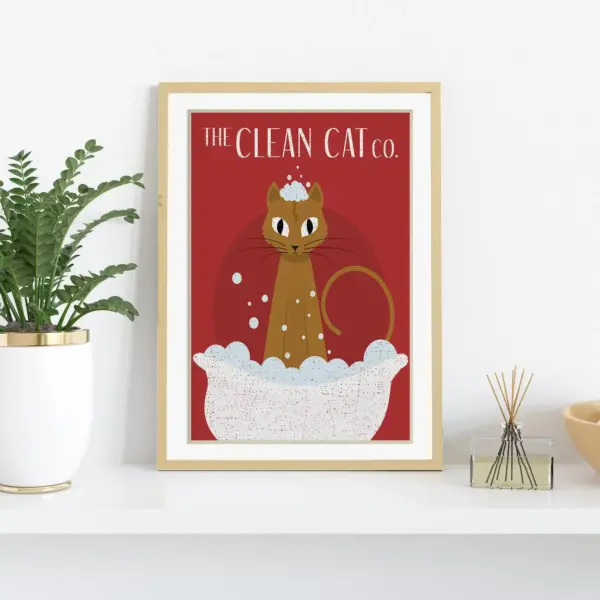 Clean Cat Co Print Funny Cat Art Cat Lover Gift Cat Wall Art Printable Wall Art Bathroom Poster Funny Bathroom Decor