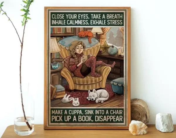 Close Your Eyes Take A Breath Pick Up A Book Disappear Poster Book Poster Art Bookworm Gift Love Reading Book Poster No Framed