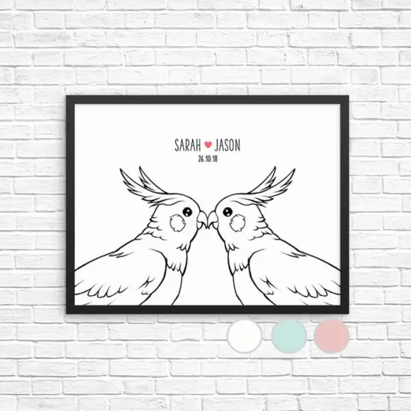 Cockatiel Wall Art Custom Name Print Personalized Couple Wedding Decor Bird Animal Sign Poster Newlywed Valentine Housewarming Gift